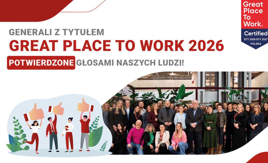 Generali Polska znalazło się w gronie pracodawców wyróżnionych certyfikatem Great Place to Work 2026. Tytuł przyznawany na podstawie opinii pracowników potwierdza, że ubezpieczyciel konsekwentnie buduje środowisko pracy oparte na zaufaniu, szacunku i współpracy.