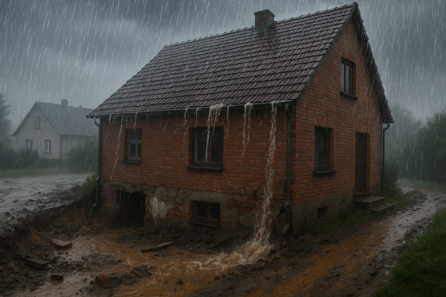 Zwykły deszcz jest naturalnym elementem klimatu, ale deszcz nawalny to zupełnie inna skala. W tym przypadku w ciągu jednej minuty na metr kwadratowy spada co najmniej cztery litry wody. Tak definiuje to skala Chomicza, stosowana przez meteorologów i ubezpieczycieli. Statystyki pokazują, że w 2024 roku w Polsce odnotowano ponad 1200 przypadków takich opadów. To liczba, która pokazuje, że nawalne deszcze przestają być rzadkością. A ich skutki niestety potrafią być kosztowne. Raport Polskiej Izby Ubezpieczeń wskazuje, że w 2021 roku wypłaty z tytułu szkód spowodowanych ekstremalnymi zjawiskami pogodowymi wyniosły 994 miliony złotych. Coraz częściej są one efektem właśnie gwałtownych opadów. Zjawisko to wpisuje się w szerszy kontekst zmian klimatycznych. Ciepłe powietrze gromadzi więcej pary wodnej, co prowadzi do bardziej intensywnych opadów. Dla właścicieli domów oznacza to rosnące ryzyko podtopień i uszkodzeń budynków.